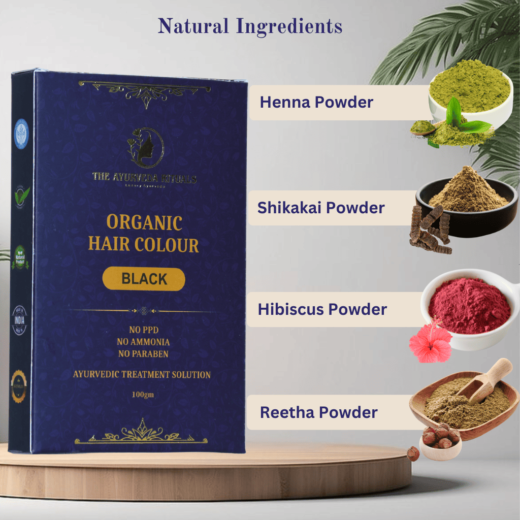 Organic Black Hair Colour is best natural hair colour without side effects, seeking vibrant, chemical-free black hair colour? Ever wondered if hair colour could be both vibrant and nurturing? Introducing our Organic Black Hair Colour, meticulously crafted with Henna, Amla, Shikakai, and other natural wonders. Embrace the essence of purity with zero harmful chemicals like Ammonia, PPD, etc.
