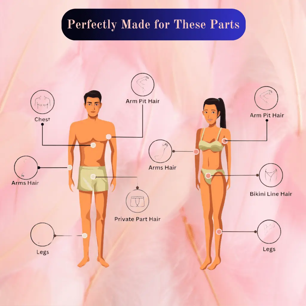 - Painless full body hair removal in 10 minutes for under arm,legs, hands & full body parts.
