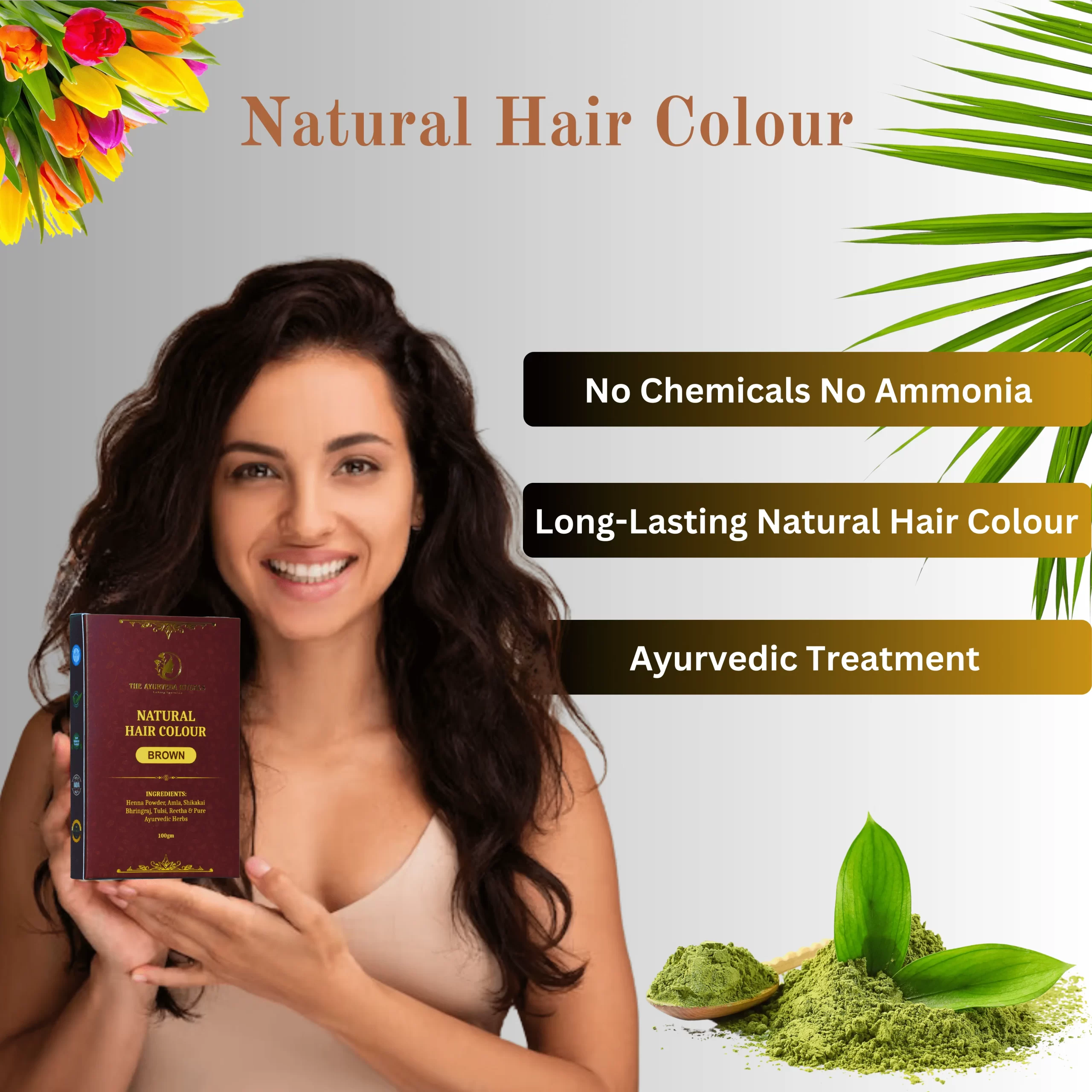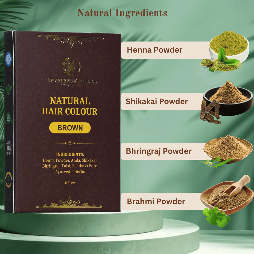 Effortlessly turn Gray hairs to natural brown with our premium Natural Brown Hair Colour from The Ayurveda Rituals. Name Any Natural Hair Colour but we known as best natural hair colour in india. Enjoy hair that’s not only darker but also thicker, stronger, and silkier, with results that maintain their vibrancy for up to 4-5 weeks.
