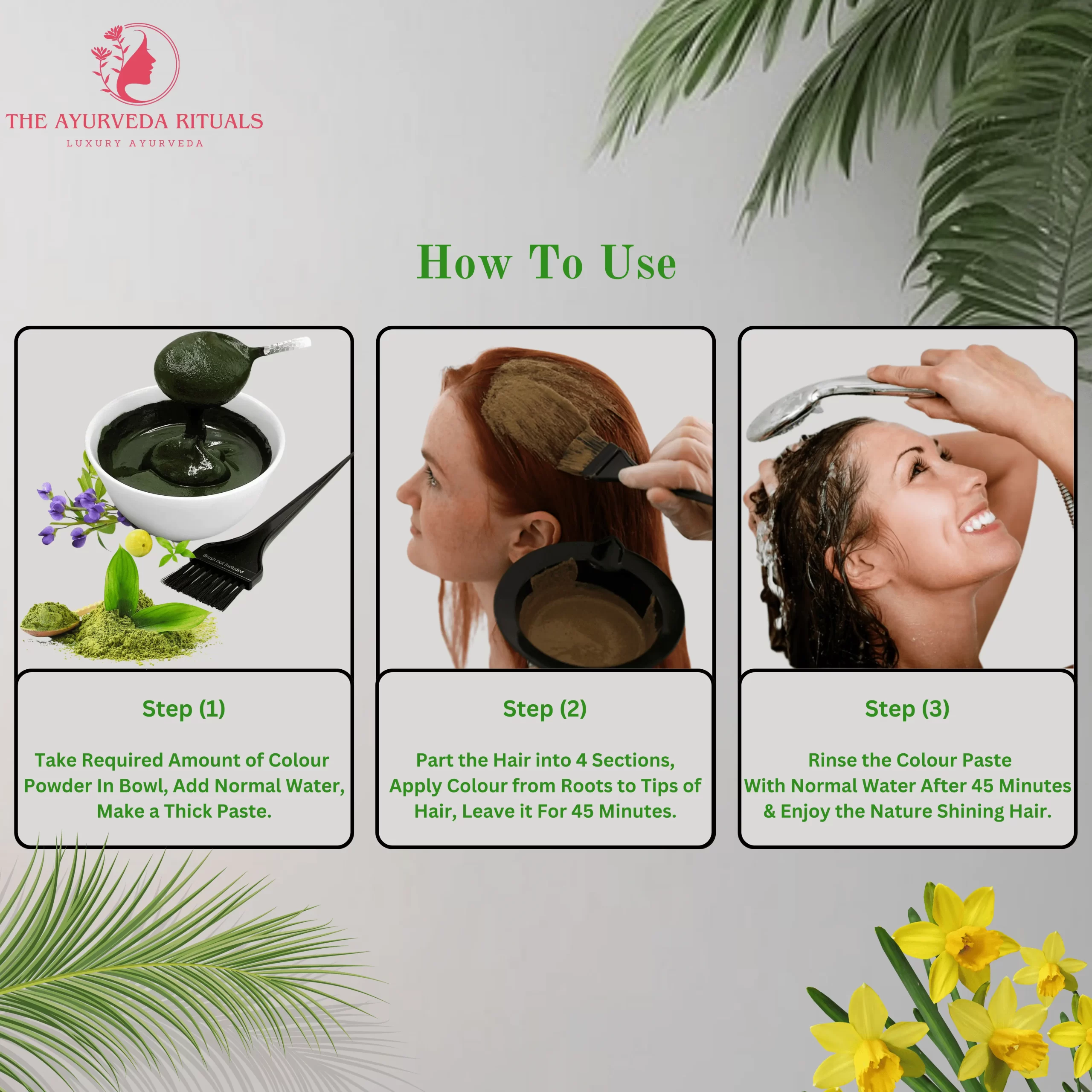 Note: Ensure to wash hair with shmapoo and dry then apply colour, Don’t use on oily hair.